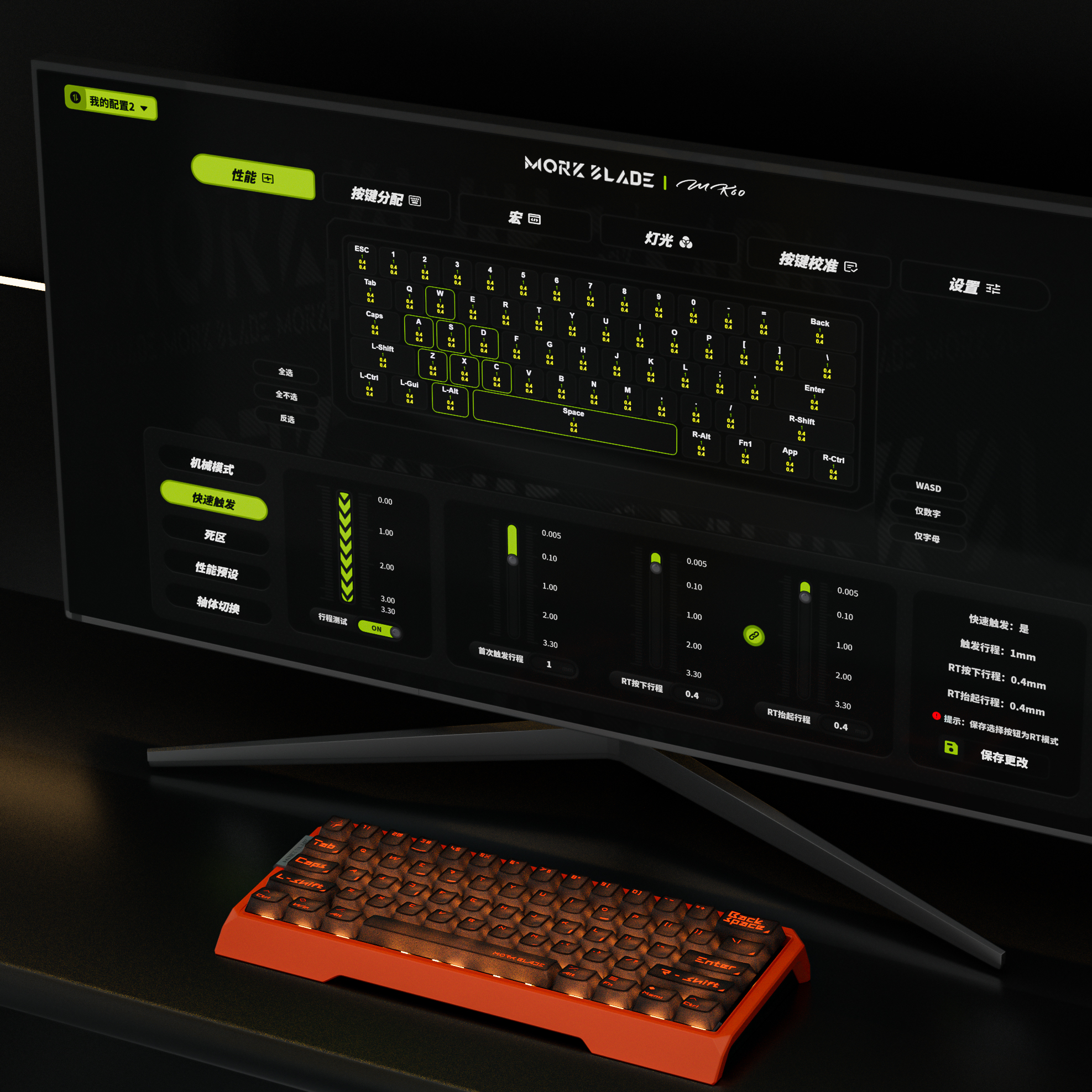 MorkBlade’s companion software allows per-key analog tuning, rapid-trigger sensitivity, and lighting synchronization.